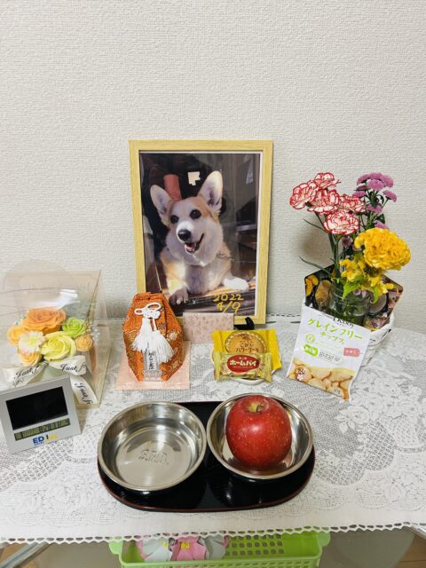 旅行から帰ってきて、まずは、メロン🐕のお骨と写真に向かって